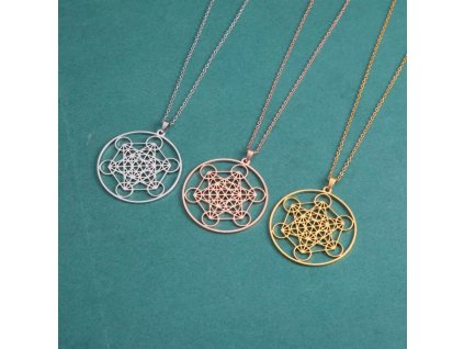 Náhrdelník Květ života v barvě růžového zlata nerezová ocel, nastavitelná velikost
