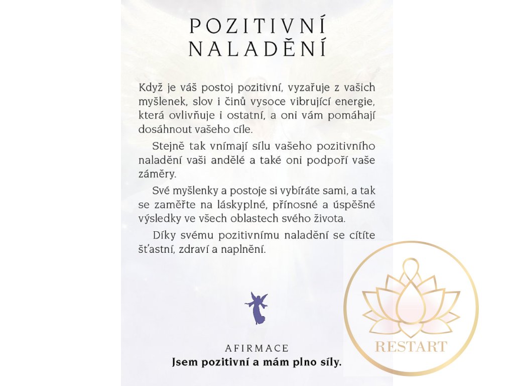 Dovolte, aby vám Anděly světla do vašeho života pomohly přivolat také tyto karty. Karty Andělé světla vám mohou pomoci zbavit se starých negativních myšlenkových vzorců a emočních bloků, které vám v životě bránily ve spokojenosti a vývoji. Vnesou do vašeho vědomí světlo – a světlo obsahuje duchovní poznání a informace.