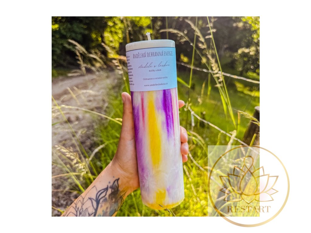 Andělská svíčka je jemná, láskyplná svíčka, tvořená něžnými barvami a klidnou energií. Byla stvořena pro chvíle, kdy toužíte po ochraně, vnitřním klidu a blízkosti svých andělů. Díky své jemnosti je vhodná i pro děti, kterým přináší pocit bezpečí a ochranu. Zapalte tuto svíčku a nechte se obejmout andělskou přítomností. Dovolte si zastavit, nadechnout a vnímat světlo, které vás chrání a hladí. Je určena k ochraně, zklidnění mysli a spojení s vašimi strážnými anděly.