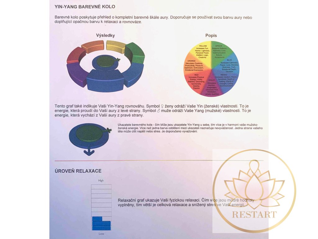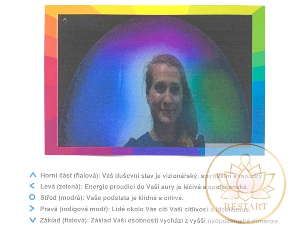 Pomocí speciální biofeedback technologie můžeme tuto energii převést do barevného obrazu. Každý odstín, tvar i záření má svůj význam – odráží tvé momentální rozpoložení i dlouhodobější tendence.