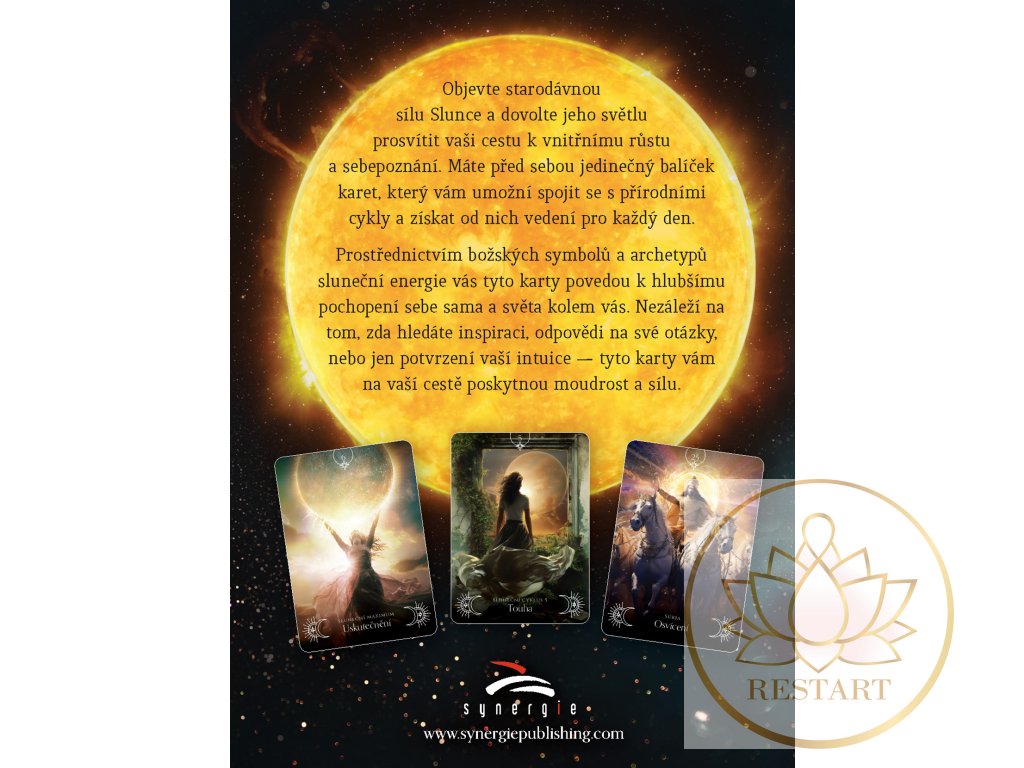 Objevte starodávnou sílu Slunce a dovolte jeho světlu prosvítit vaši cestu k vnitřnímu růstu a sebepoznání. Máte před sebou jedinečný balíček karet, který vám umožní spojit se s přírodními cykly a získat od nich vedení pro každý den.