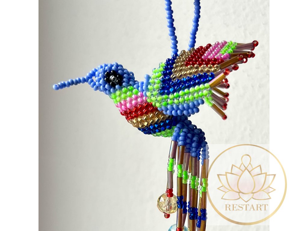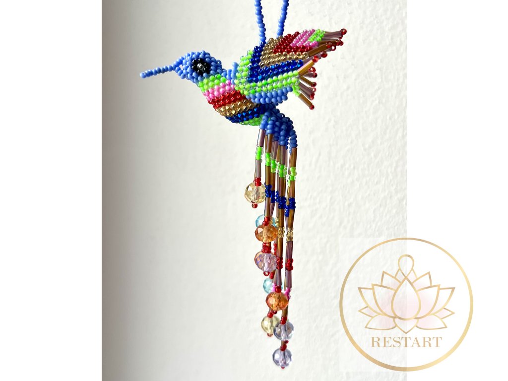 Kolibřík ze zářivých korálků, ruční práce, vyroben v Guatemale.