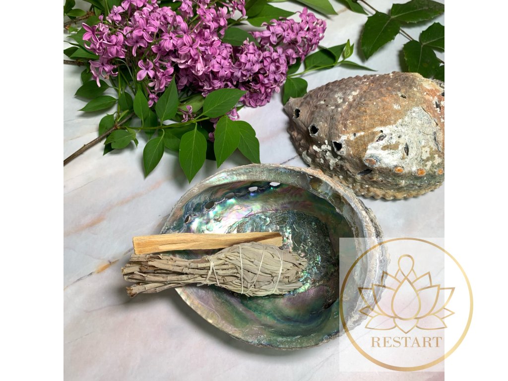 - na dno mušle nasypte vrstvu izolačního písku nebo mořské soli (aby se nezničil perleťový povrch), zapalte vykuřovadlo, nechte rozhořet, a sfoukněte. Dým necháme volně stoupat, můžeme rozdmýchat do prostoru pomocí pírka, nebo případně můžeme se svazkem procházet všechna místa v bytě či domě, na která chceme očistně působit.