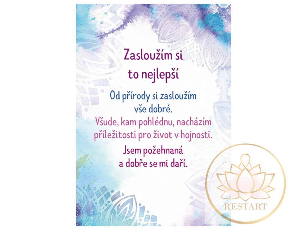 54 karet s afirmacemi Louise L. Hay vám pomůže znovu objevit vaši zapomenutou vnitřní sílu. Afirmace jsou jedním z nejúčinějších pomocníků na cestě našeho osobního i duchovního růstu a díky praktickému formátu můžete karty s oblíbenými afirmacemi nosit při sobě, nebo si je rozmístit všude, kde je budete mít stále na očích.