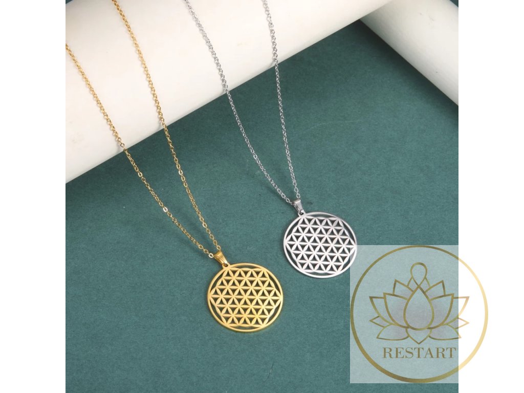 Náhrdelník Květ života v barvě růžového zlata nerezová ocel, nastavitelná velikost