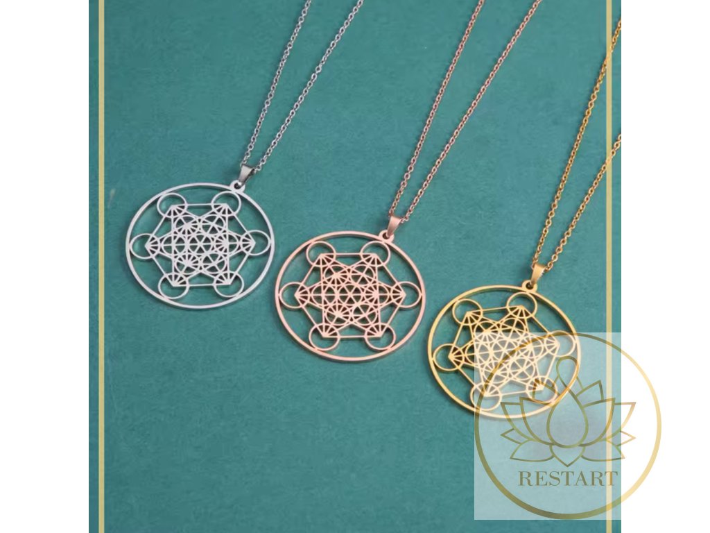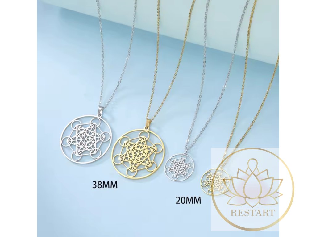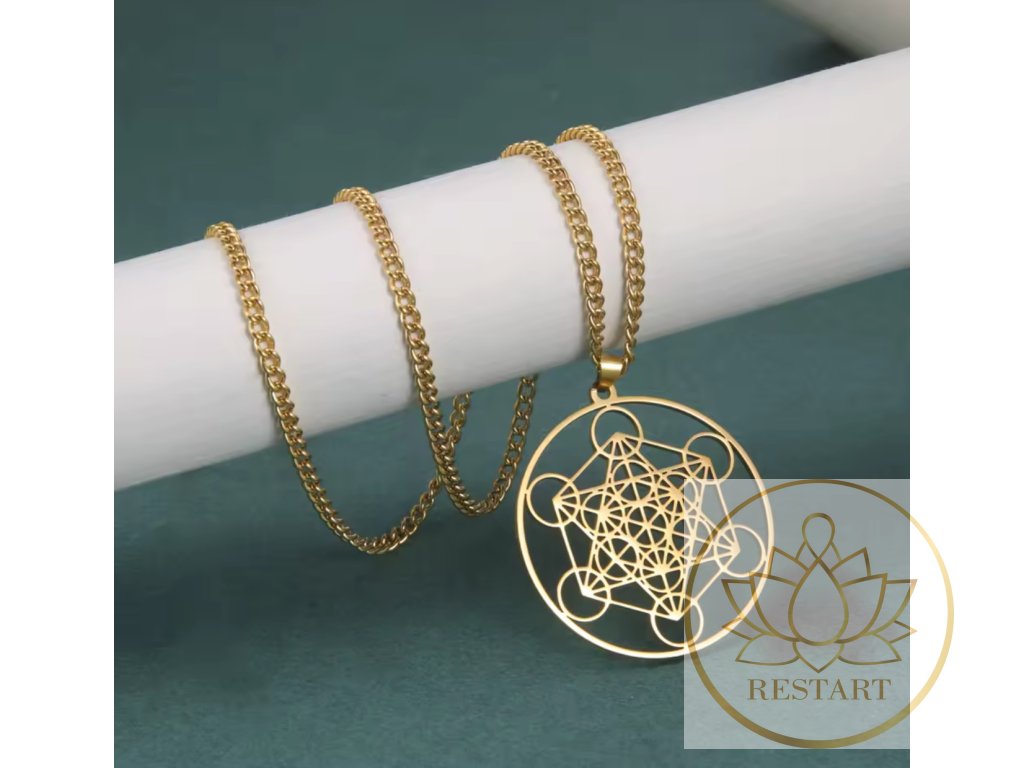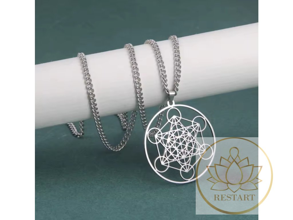 Metatronova kostka je jedním z nejmocnějších symbolů posvátné geometrie. Představuje propojení mezi nebem a zemí, rovnováhu, ochranu a čistotu univerzálních energií. Tento náhrdelník z nerezové oceli může být tvým každodenním talismanem i elegantním šperkem.