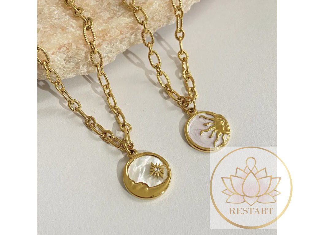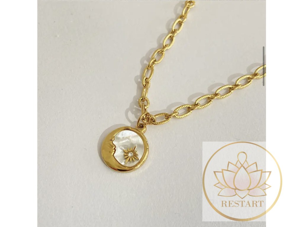 Kouzelný náhrdelník s motivem měsíce na bílé perleťi rozzáří váš dekolt a přinese kouzlo do vašeho dne.