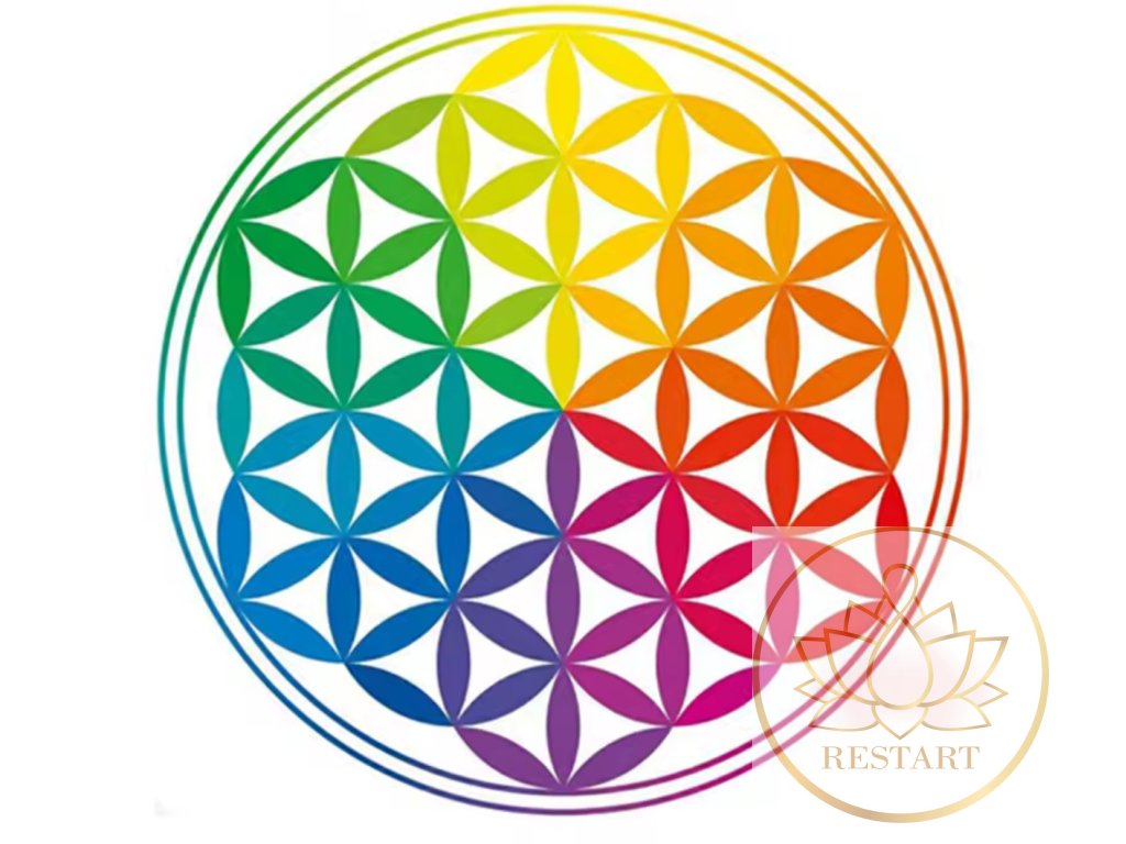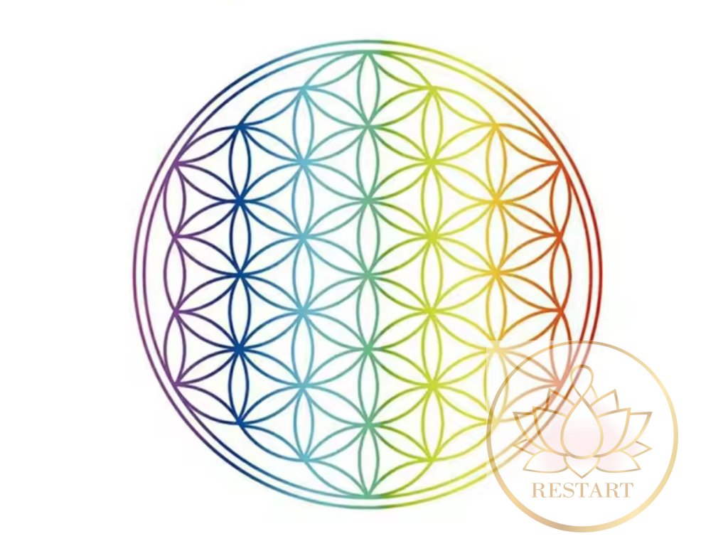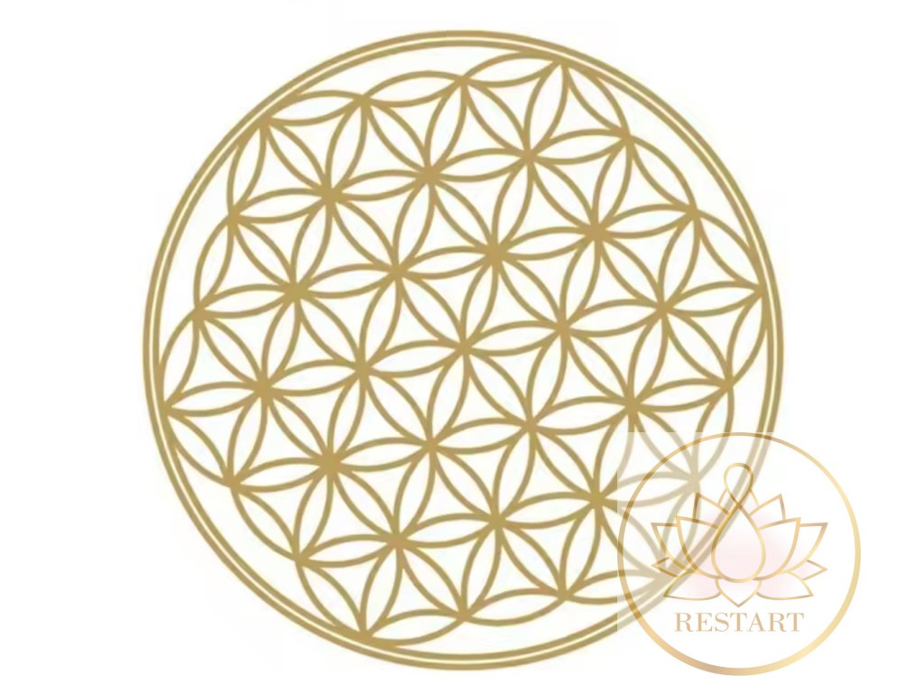 Nálepka o průměru 3 cm s motivem Květu života, jednoho z nejstarších a nejznámějších symbolů posvátné geometrie. Květ života představuje dokonalý řád, harmonii a propojení všeho živého. Je považován za univerzální symbol života, ochrany a energie, která podporuje rovnováhu a vnitřní klid.
