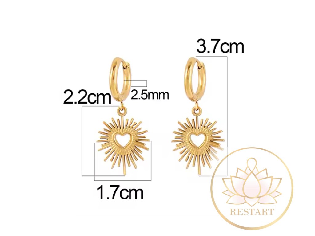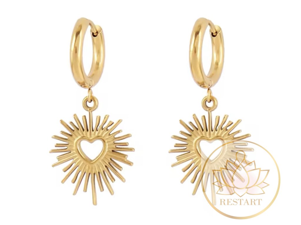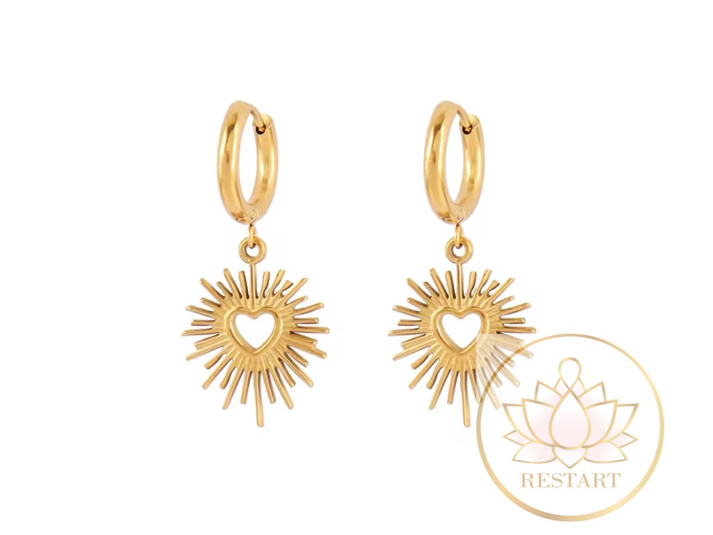 Náušnice Zářící srdce ve zlaté barvě nerezová ocel
