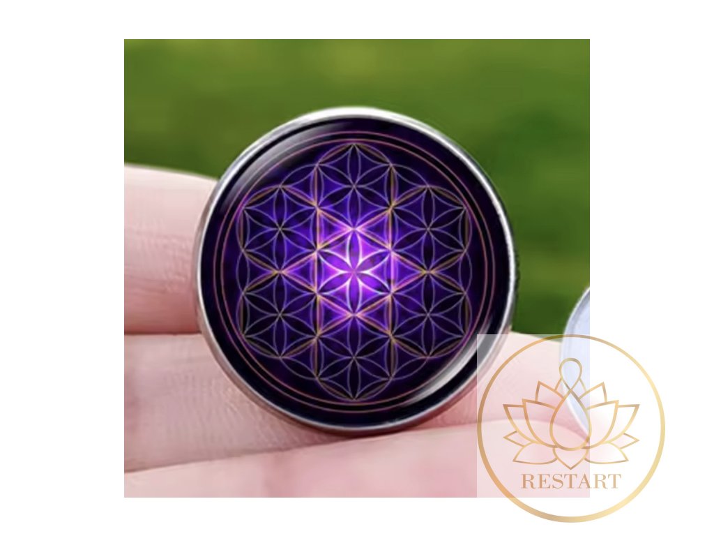 Elegantní odznáček s motivem Květu života v zářivých fialovo-fialových tónech propojuje krásu, duchovní sílu a hlubokou moudrost posvátné geometrie. Tento prastarý symbol představuje jednotu, propojení všeho živého a dokonalý řád vesmíru.