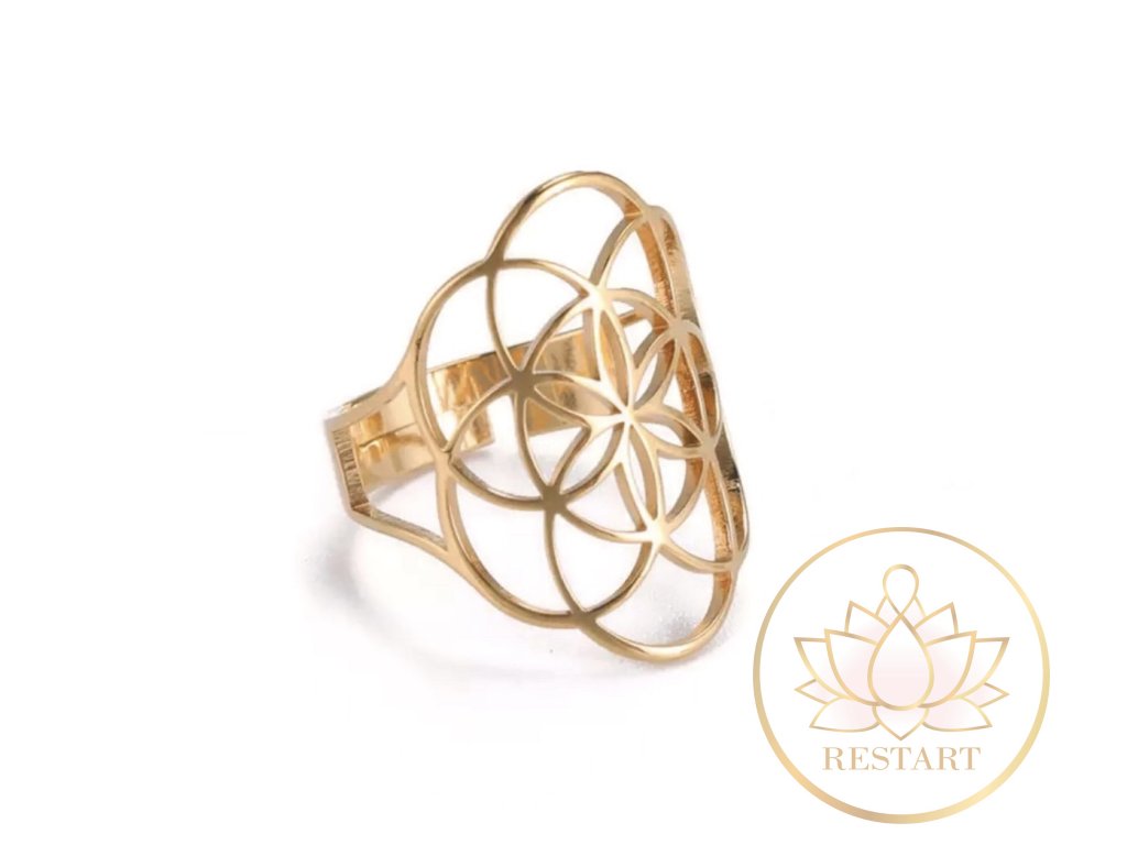 Prsten Semeno života ve zlaté barvě nerezová ocel, nastavitelná velikost