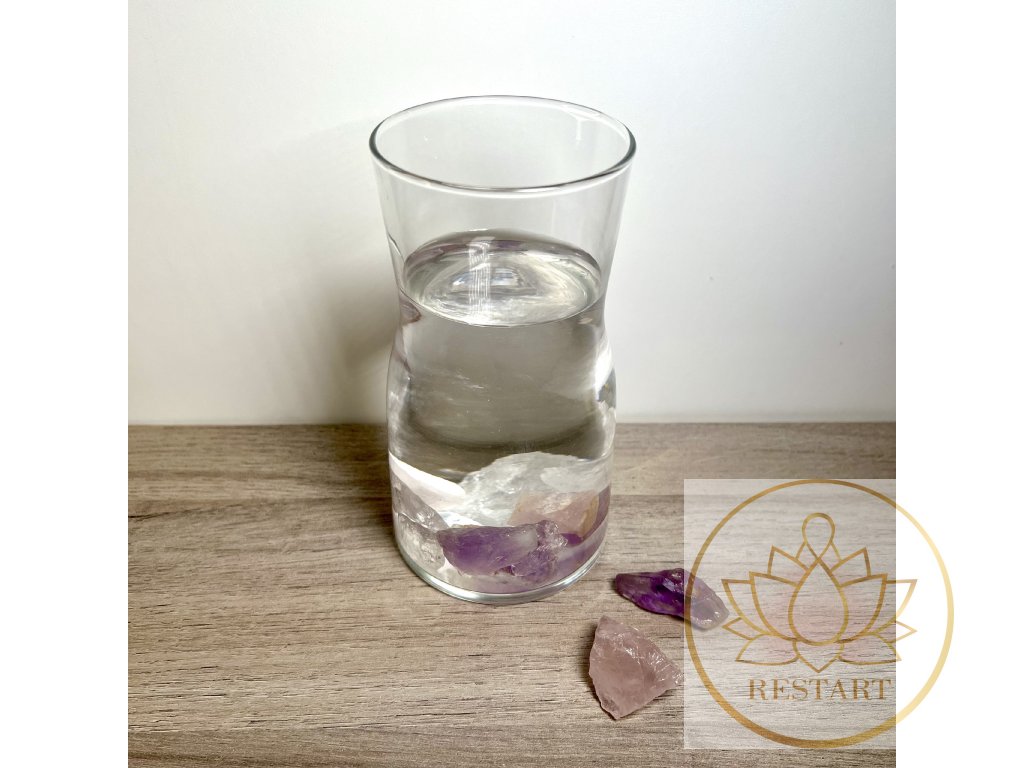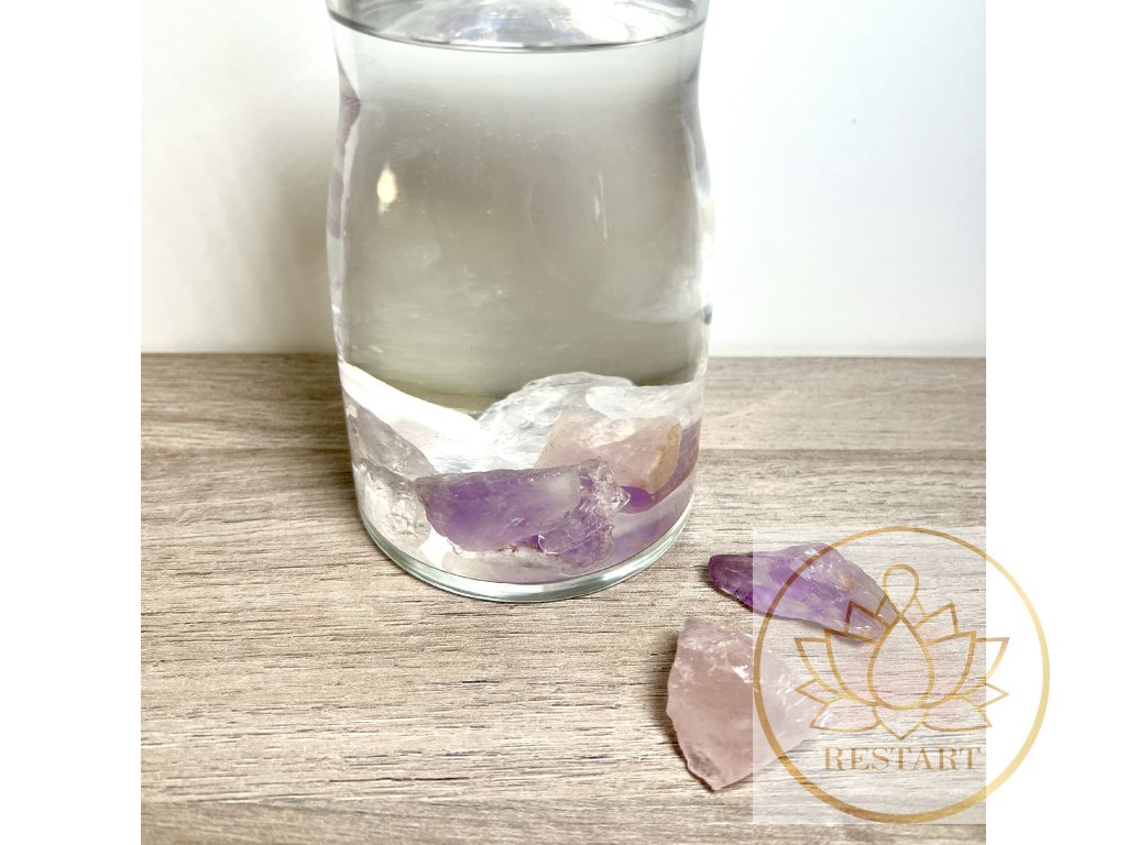 Po očištění a nabití na slunci, je opatrně vložte do karafy naplněné cca 1-2 litry vlažné (nejlépe filtrované), pitné vody tak, aby nedošlo k poškození kamenů ani karafy. Nejvhodnější je použít nádobu s minimálním objemem 1l a větší, aby se voda stihla odstát a nabít se energií kamenů.