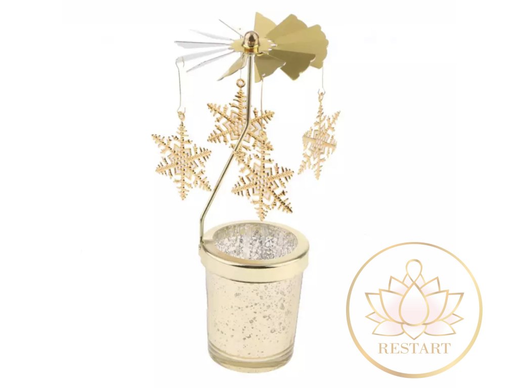 Svícen kolotoč s motivem vločky vysoký zlatý