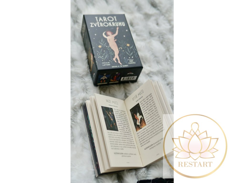 Tarot zvěrokruhu o 78 kartách, navazující na klasický Tarot Rider-Waite-Smith, nám otvírá svět astrologie vycházející z dávných tradic mnoha kultur. V něm nacházíme příběhy, božstva a postavy, které představují fascinující obrazový materiál k interpretaci.